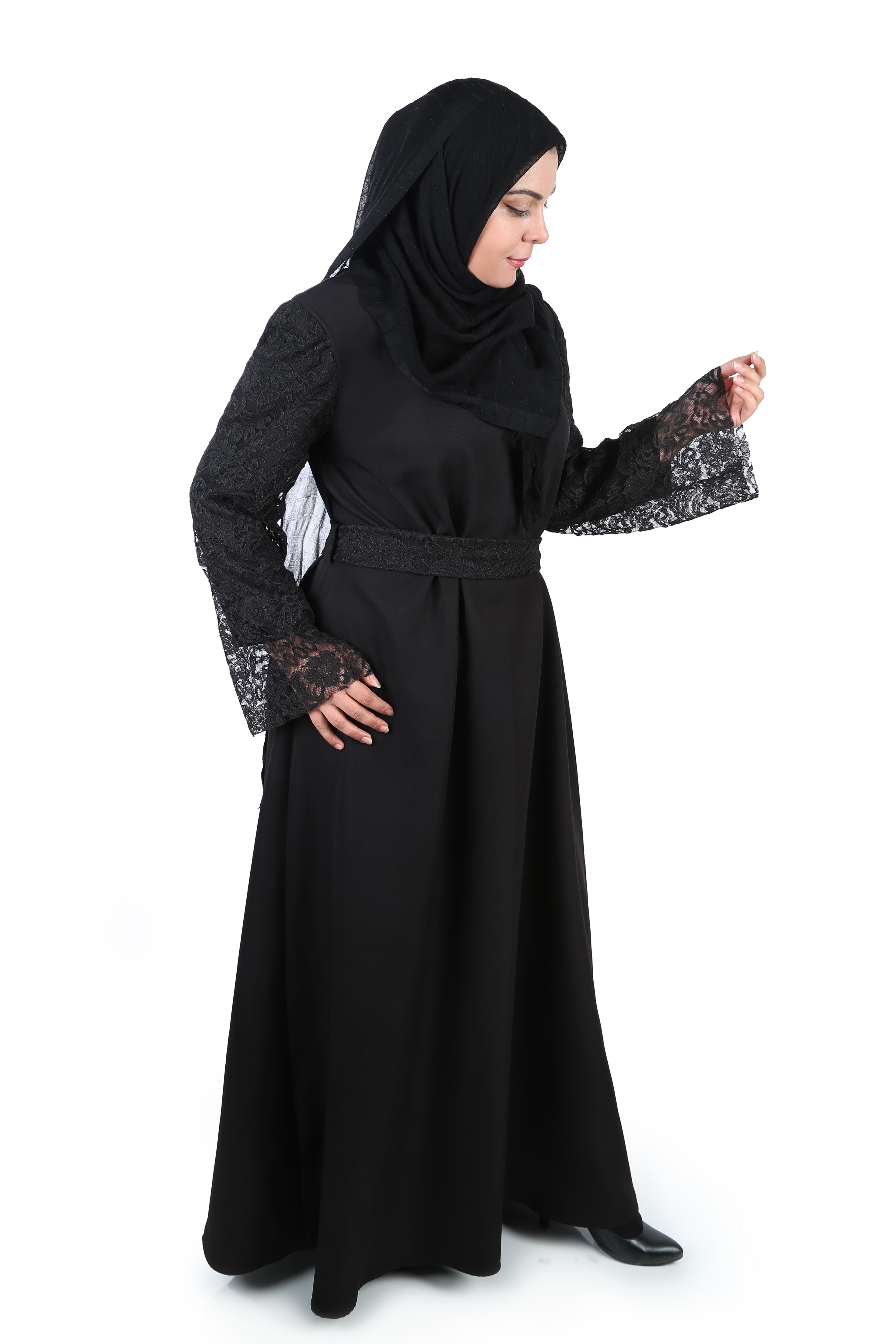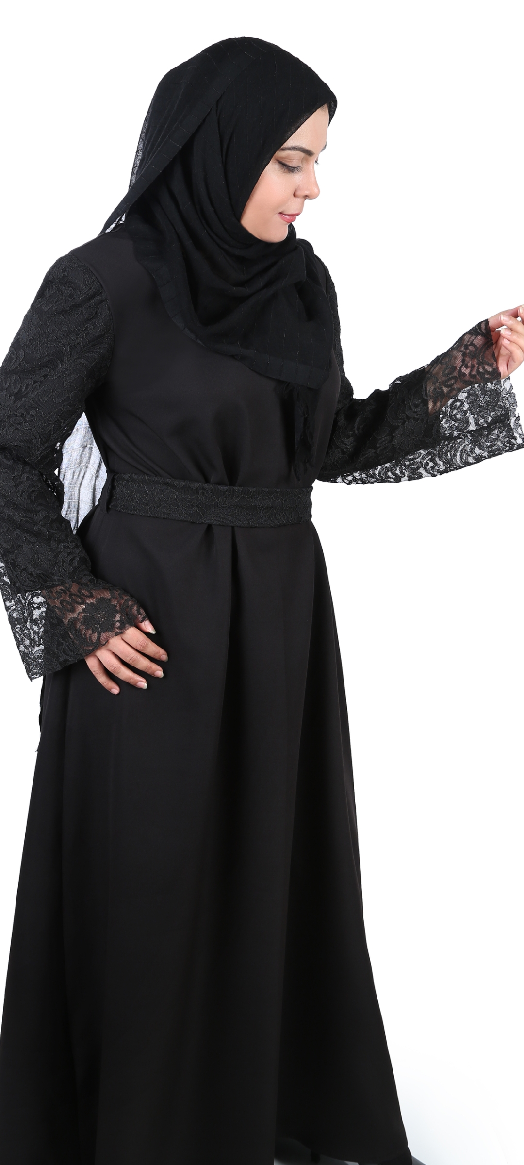 مانتو عبایی جنس کرب درجه ۱ آستین و کمربند گیپور آستین دوبل گیپور و کرب کمربند متحرک دارای زیپ مخفی از پشت قد ۱۴۵